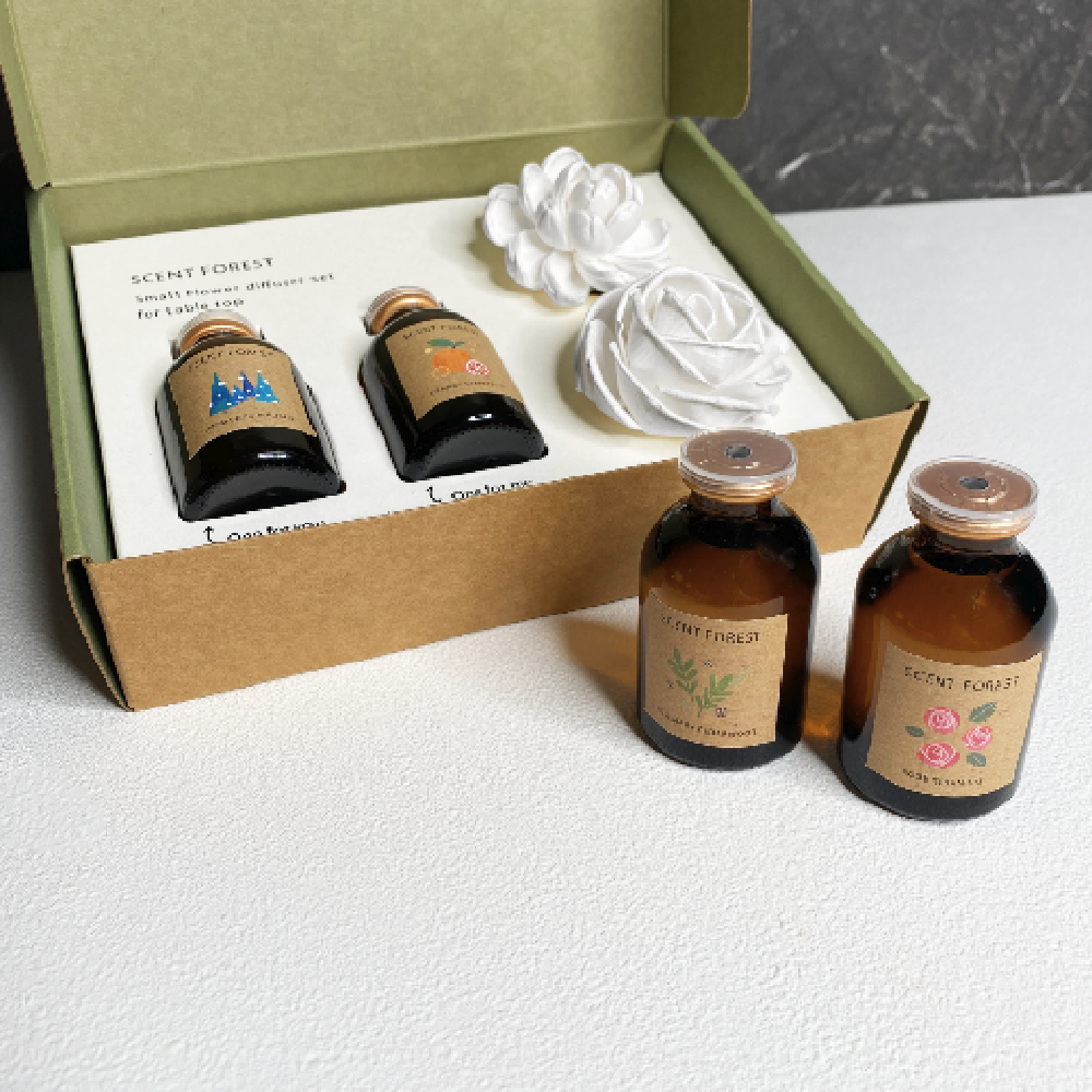 【內容】兩瓶30ml±5ml天然精油+兩朵索拉花+紙盒包裝
